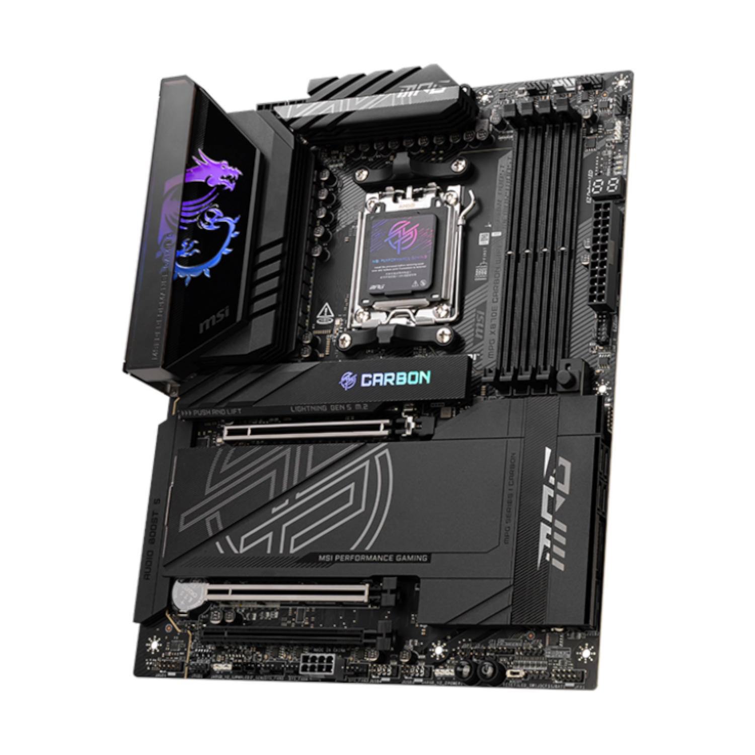 MPG X870E CARBON WIFI employs a carbon black colour scheme and stylish pattern over Mystic light RGB lighting to show a different identity. It is also powerful inside by featuring 5G LAN, true Wi-Fi 7 solution, USB 40Gbps, Supplemental PCIe Power, and the latest EZ DIY designs, making this motherboard one of the best X870E…