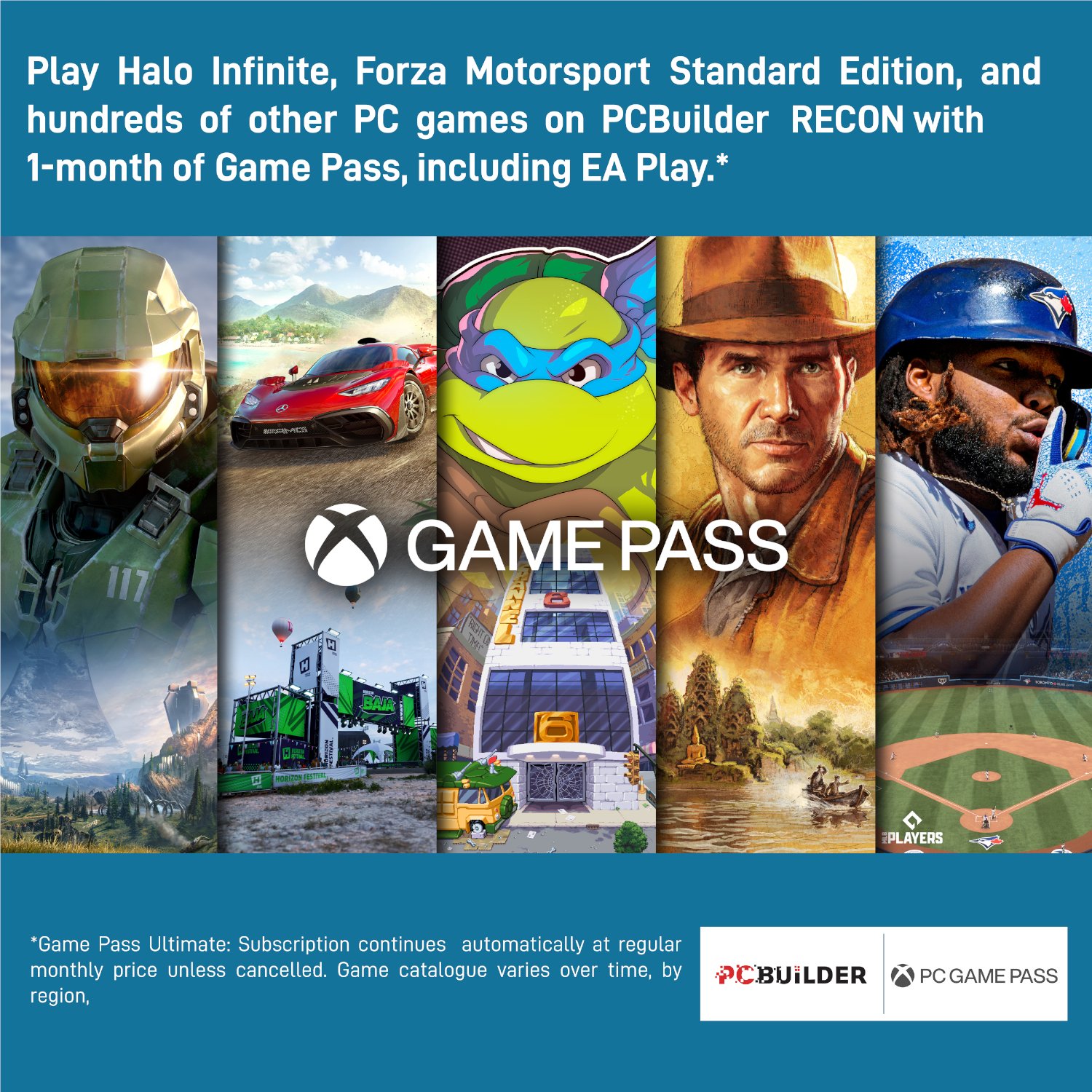 - Play over 100 high-quality PC games like Halo Infinite, Forza Horizon 5 and Teenage Mutant Ninja Turtles: Shredder’s Revenge with your new build and one month of PC Game Pass including EA Play. With new games being added all the time, there’s always something new to play from day one.​